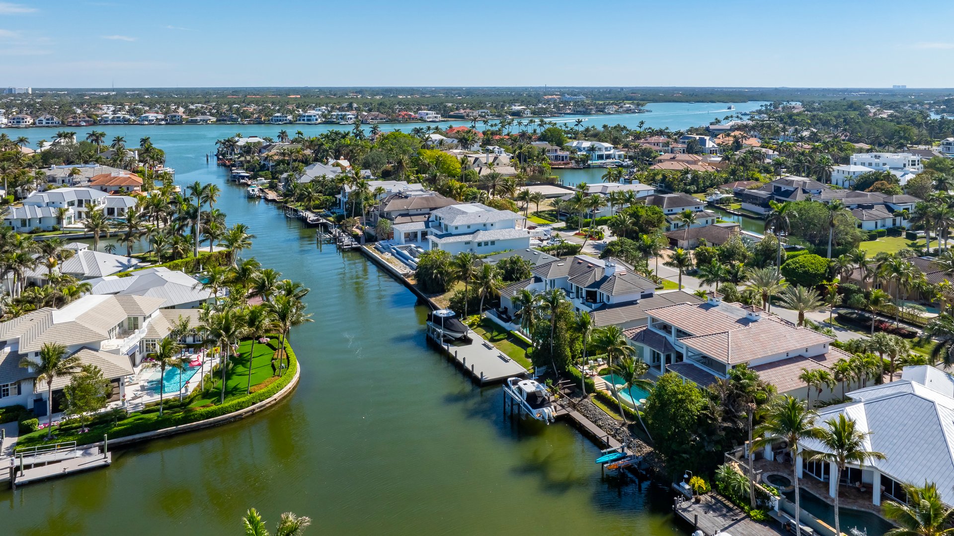 Waterfront Mix: Deep-water canals, Naples Bay frontage, and Gulf-front beachfront homes